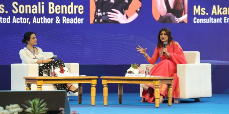 સમગ્ર આ દિવસની હાઈલાઈટ બની રહી પ્રખ્યાત અભિનેત્રી, લેખક અને વાચક શ્રીમતી સોનાલી બેન્દ્રેની ઉપસ્થિતિ. તેઓ સાથેની “ફાયર સાઇડ ચેટ” નું સંચાલન શ્રીમતી આકાંક્ષા શામવાનીએ કર્યું હતું. આ સત્રમાં પરંપરાગત વ્યાવસાયિક ક્ષેત્રોથી આગળ વધી વ્યક્તિગત સ્થિતિસ્થાપકતા, રી-ઇન્વેન્શન (પુનઃ શોધ) ની જરૂર તેમજ આ ક્ષેત્રે સક્ષમ નેતૃત્વ પર ખુબ પ્રભાવિત વિચાર પ્રસ્તુત થયા હતા તેમજ સમગ્ર સેશન દરમિયાન પ્રેક્ષકો દ્વારા પ્રતિઘોષ આ સેશનની હાઈલાઈટ બની રહ્યા હતા.