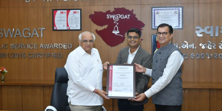 ગાંધીનગર, સંજીવ રાજપૂત: ગુજરાતના મુખ્યમંત્રી કાર્યાલયને ISO ૯૦૦૧:૨૦૧૫નું સર્ટિફિકેશન આપવામાં આવ્યું છે.