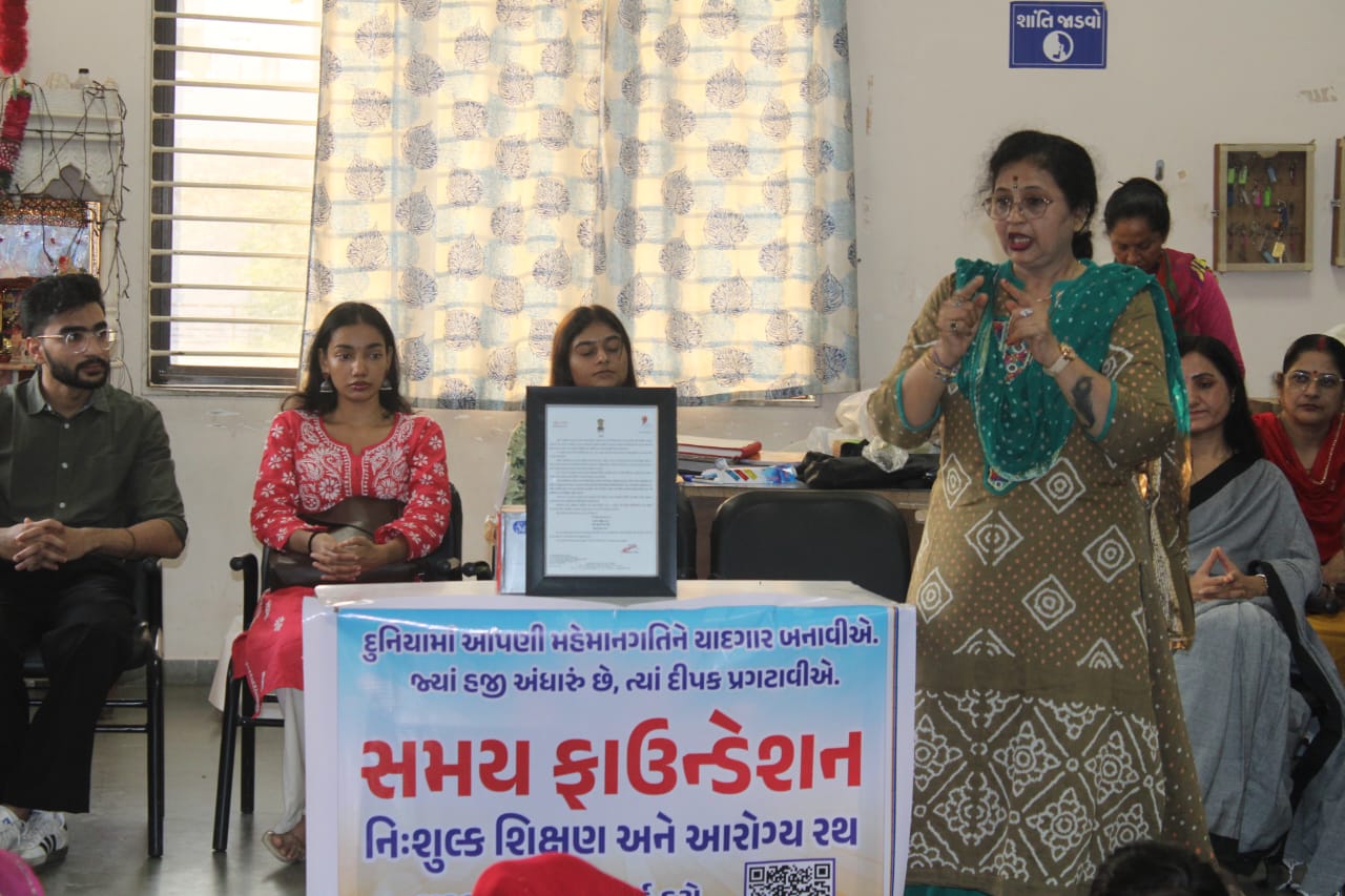 સમય ફાઉન્ડેશન, ઝુંડાલ દ્વારા તમામ દીકરીઓને પ્રધાનમંત્રી જનઔષધિ કેન્દ્રના સેનેટરી પેડ આપવામાં આવ્યા, જ્યારે બાળકોને શિક્ષણ કિટ અને સૌને નાસ્તો વિતરણ કરવામાં આવ્યો.