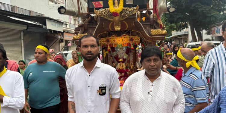 વહેલી સવારે વ્યાસવાડી ચાર રસ્તા ઉપર પૂજા અર્ચના અને આરતી કરવામાં આવી અને 52 ગજની ધજાને ભક્તોના દર્શન અર્થે ખોલવામાં આવી. ત્યાર બાદ આ રથ અને ધજા કુંતા પાર્ક સોસાયટીમાં પ્રવેશ કરતા ત્યાં ઉપસ્થિત લોકો દ્વારા પૂજા કરી ભવ્ય સ્વાગત કરવામાં આવ્યું હતું.