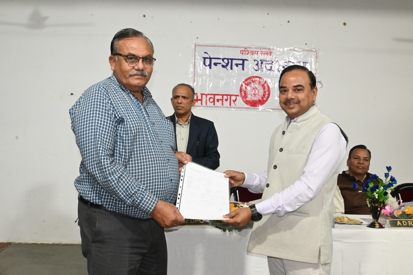 પશ્ચિમ રેલવેના ભાવનગર રેલવે મંડળ પર તારીખ 15 ડિસેમ્બર, 2025 (સોમવાર)ના રોજ મંડળ રેલ પ્રબંધક શ્રી દિનેશ વર્માની અધ્યક્ષતામાં “68મી પેન્શન અદાલત”નું સફળ આયોજન કરવામાં આવ્યું. આ પેન્શન અદાલતમાં મંડળના નિવૃત્ત કર્મચારીઓની પેન્શન સંબંધિત વિવિધ સમસ્યાઓનું નિરાકરણ કરવામાં આવ્યું.