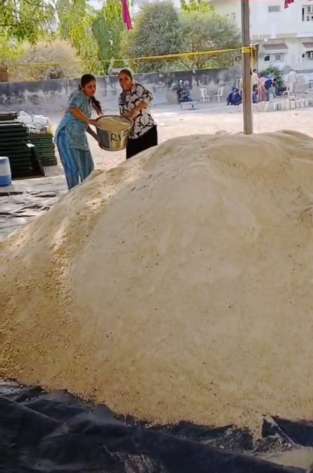 જીવદયા પ્રેમીઓ દ્વારા સેવાભાવી મંડળો, સંસ્થાઓના સહયોગથી ઘઉંનો લોટ ગોળ ઘી મિશ્રિત કરી ૫૫૦ મણ કીડીયારું બનાવ્યું