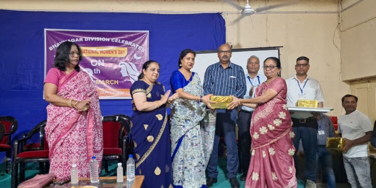 अंतर्राष्ट्रीय महिला दिवस के उपलक्ष्य में स्थानीय हित निधि समिती (LSBF) के द्वारा भावनगर मंडल की सभी 280 महिलाओं को विशेष स्मृति चिन्ह अर्पण करके उनका बहुमान करने का उपक्रम है, जिसके तहत प्रतीक स्वरूप 11 बहनों को इस कार्यक्रम में मंडल रेल प्रबंधक महोदय के कर कमलों से सम्मानित किया गया।