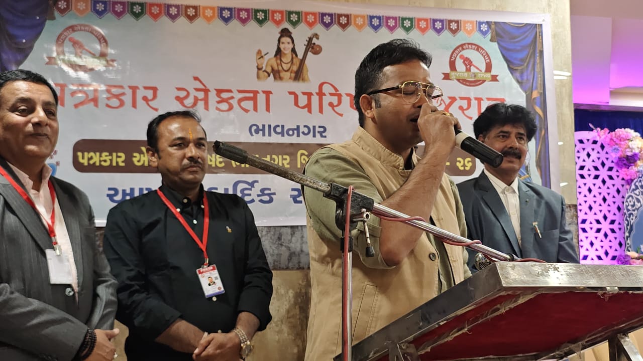 ભાવનગર તા 28 ને રવિવારે ભાવનગર શિવશક્તિ હોલ, ક્રેસન્ટ, સરદાર સ્મૃતિ પાસે એક પછી એક એમ ત્રીજા પત્રકાર અધિવેશન ની મજબૂત સફળતા.ભાવનગર સ્ટેટ યુવરાજ શ્રી વિજયરાજસિંહજી ગોહિલ ના અધ્યક્ષ સ્થાને અને જિલ્લા કલેકટર શ્રી મનીષ કુમાર બંસલ ની હાજરી,આમંત્રિત મહેમાનો ની વિશાળ ઉપસ્થિતિ અને પ્રદેશ,જિલ્લા,જોન ના હોદ્દેદારો ની હાજરી પણ ઉડીને આંખે વળગે તેવી હતી.