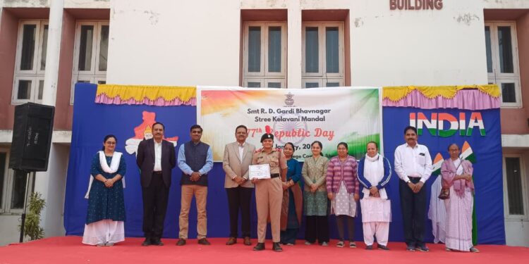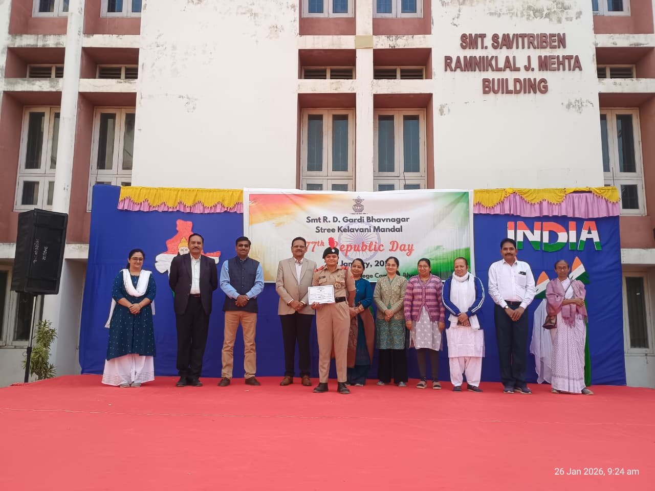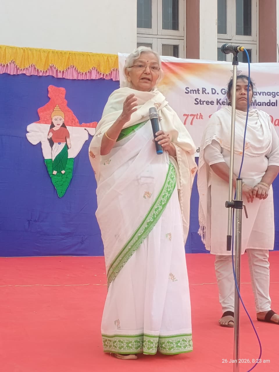 તા.૨૬જાન્યુઆરી, ૨૦૨૬ના રોજ ભાવનગર સ્થિત શ્રીમતીઆર.ડી. ગાર્ડી ભાવનગર સ્ત્રી કેળવણી મંડળ દ્વારા ગાંધી મહિલા કોલેજ સંકુલ ખાતે દેશના ૭૭માં ગણતંત્ર દિવસની ઉજવણી ગૌરવ, ઉત્સાહ અને દેશભક્તિપૂર્ણ વાતાવરણમાંયોજવામાં આવી.