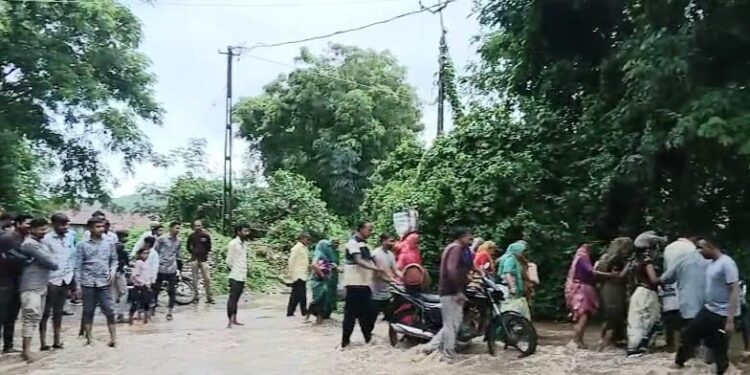 વરસાદ આવતા જ અહીં રસ્તો નીચે હોવાને કારણે આ રસ્તા ઉપર પાણી ફરી વળે છે જેના કારણે એક ગ્રામજનો ભારે મુશ્કેલીમાં મુકાય છે