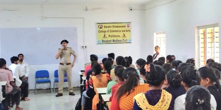 સ્વામી વિવેકાનંદ આર્ટ્સ એન્ડ કોમર્સ કોલેજ, પાલીતાણામાં વિદ્યાર્થીઓ માટે સાયબર ક્રાઇમ વિષય પર જાગૃતિ સેમિનારનું આયોજન કરવામાં આવ્યું હતું. આ સેમિનારમાં મુખ્ય વક્તા તરીકે ડી.એચ. જાડેજા સાહેબ ઉપસ્થિત રહ્યા હતા. તેમણે વિદ્યાર્થીઓને ઇન્ટરનેટ અને સોશિયલ મીડિયા દ્વારા થતી વિવિધ પ્રકારની સાયબર ગુનાઓ અંગે ની વિગતવાર માહિતી પૂરી પાડી હતી