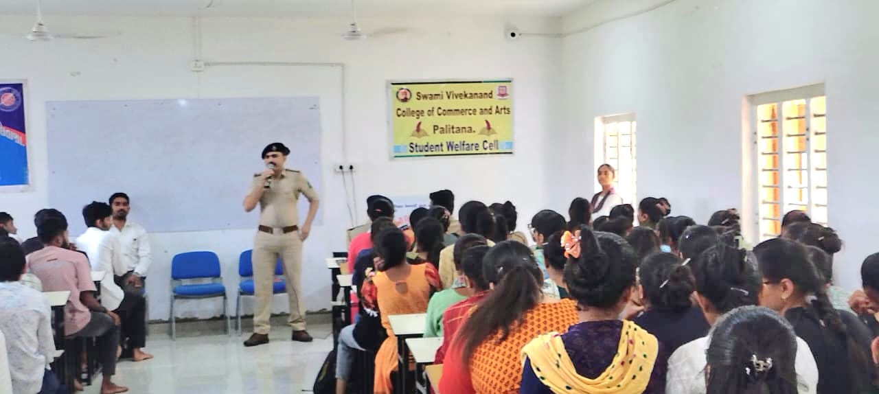 સ્વામી વિવેકાનંદ આર્ટ્સ એન્ડ કોમર્સ કોલેજ, પાલીતાણામાં વિદ્યાર્થીઓ માટે સાયબર ક્રાઇમ વિષય પર જાગૃતિ સેમિનારનું આયોજન કરવામાં આવ્યું હતું. આ સેમિનારમાં મુખ્ય વક્તા તરીકે ડી.એચ. જાડેજા સાહેબ ઉપસ્થિત રહ્યા હતા. તેમણે વિદ્યાર્થીઓને ઇન્ટરનેટ અને સોશિયલ મીડિયા દ્વારા થતી વિવિધ પ્રકારની સાયબર ગુનાઓ અંગે ની વિગતવાર માહિતી પૂરી પાડી હતી