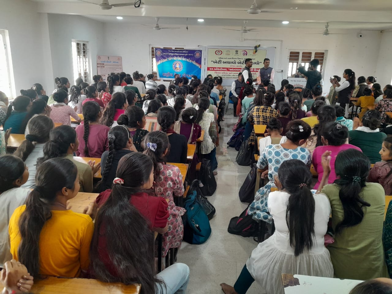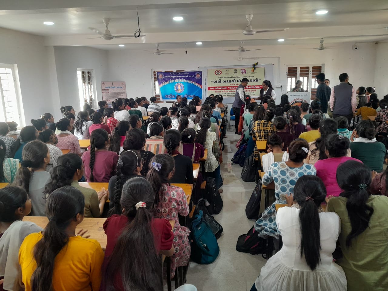 ત્યારે આ કાર્યક્રમમાં ઉપસ્થિત સર્વનું કૉલેજ પરિવાર વતી પુસ્તક આપી સન્માન કરવામાં આવ્યું હતું આ સાથે દીકરી વધામણા અંતર્ગત નાનકડી બાળા અને તેના માતાને જરૂરી સામગ્રીની કીટ આપવામાં આવી હતી તેમજ વિદ્યાર્થીની બહેનોને ખૂબ જરૂરી માર્ગદર્શન આપી વિવિધ યોજનાઓ સમજાવી હતી તો સાથે સાથે ઘરેલું હિંસા અને તેના કાયદાઓ વિશે જાણકારી આપી હતી અને તેની સાથે વિવિધ રમતોમાં સ્થાન પ્રાપ્ત કરેલ બહેનોને ખૂબ સરસ પ્રોત્સાહિત ભેટ પણ આપવામાં આવી હતી