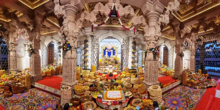 દિપાવલીનાં પર્વમાં પ્રકાશોત્સવ બાદ આજથી નૂતન વર્ષનો પ્રારંભ થયો છે. અને દર વર્ષની માફક આ વર્ષે પણ BAPS શ્રી સ્વામિનારાયણ મંદિર અક્ષરવાડી ખાતે નૂતન વર્ષ નિમિતે ભવ્ય અન્નકૂટ નું આયોજન કરવામાં આવ્યું હતું. ભગવાન સમક્ષ આશરે ૧૨૦૦ કરતાં પણ વધારની સંખ્યામાં વિવિધ પ્રકારની વાનગી ધરાવવામાં આવી હતી.
