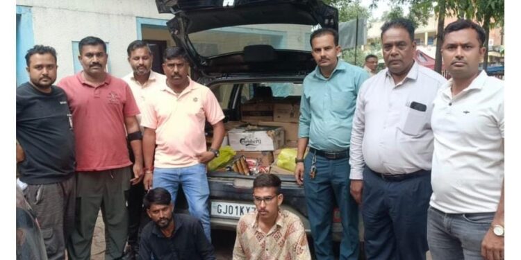 દરમ્યાન બાતમી હકીકત આધારે તા-૦૧/૦૮/૨૦૨૫ ના કલાક ૧૪/૩૦ વાગ્યાના સુમારે આરોપીઓ (૧) કનીષ સ/ઓ વીરજી પટેલ ઉ.વ-૨૧ ધંધો-મજુરી રહે બેન્ક ઓફ બરોડા પાસે ગામ-દેવલખાસ તા-દેવલપાલ જી-ડુંગરપુર રાજ્ય-રાજસ્થાન તથા બાજુમા બેસેલ ઇસમે પોતાનુ નામ (૨) પ્રકાશ સ/ઓ નારણ મીણા ઉ.વ- ૩૪ ધંધો-મજુરી રહે સામલાફલા ગામ-મસારૂ કી ઓબરી તા-રીષભદેવ જી-ઉદેપુર રાજય-રાજસ્થાન નાઓ નાના ચીલોડા ચાર રસ્તા પંડીતજી રેસ્ટોરેન્ટની સામે નાના ચીલોડા સર્કલથી નરોડા તરફ જતા જાહેર રોડ ઉપર તેમના કબ્જાની કાળા કલરની હુન્ડાઇ કંપનીની વેન્યુ ગાડી નં. આર.જે-૨૭-સી.જે-૩૨૫૭ મા જી.જે-૦૧- કે.વાય-૭૪૦૫ ની ખોટી નંબર પ્લેટ લગાવી તેનો ખરા તરીકે ઉપયોગ કરી ગુન્હાહીત કાવતરૂ રચી સદર ગાડીમા ભારતીય બનાવટની વિદેશીદારૂની તથા બીઅરની અલગ અલગ કંપનીની શીલબંધ બોટલો નંગ- ૮૪૦ કિ રૂ ૨,૩૩,૦૪૦/- ની મત્તાની વગર પાસ પરમીટે રાખી મળી ભારતીય બનાવટની વિદેશીદારૂની તથા બીઅરની અલગ અલગ કંપનીની શીલબંધ બોટલો નંગ-૮૪૦ કિ રૂ ૨,૩૩,૦૪૦/- તથા હ્યુન્ડાઇ કંપનીની વેન્યુ ગાડી કિ રૂ ૪,૦૦,૦૦૦/- તથા ગાડીની ચાવી કિ રૂ ૦૦/- તથા નંબર પ્લેટ નંગ -૦૨ કિ રૂ ૦૦/- તથા મોબાઇલ નંગ-૦૨ કિ રૂ ૧૫,૦૦૦/- મળી કુલ્લે રૂ ૬,૪૮,૦૪૦/- નો મુદ્દામાલ સાથે મળી આવી પકડાઇ ગયેલ હોય આરોપીઓને ગુન્હાના કામે અટક કરી કાયદેસરની કાર્યવાહી કરવામા આવેલ છે તા-૦૧/૦૮/૨૦૨૫ કામગીરી કરનાર અધિકારીશ્રી/કર્મચારીઓની વિગત/લોકલ ક્રાઇમ બ્રાન્ચ ઝોન-૪,અમદાવાદ શહેર