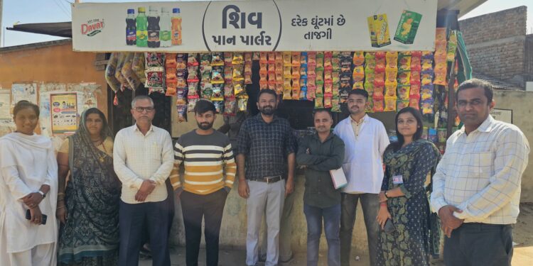 એબીએનએસ ભાભર: રાષ્ટ્રીય તમાકુ નિયંત્રણ કાર્યક્રમ અંતર્ગત બનાસકાંઠા જિલ્લામાં તમાકુ વિરોધી કાયદો “સિગારેટ એન્ડ અધર ટોબેકો પ્રોડક્ટ એક્ટ”નું સઘન અમલીકરણ થાય તે હેતુથી જિલ્લા કક્ષાએ મળેલ સૂચનાથી તાલુકા હેલ્થ ઓફીસર ડૉ હિતેન્દ્ર ઠાકોર અને મેડિકલ ઓફિસર ડૉ દર્શન દેસાઈના માર્ગદર્શન હેઠળ કુવાળા પ્રાથમિક આરોગ્ય કેન્દ્ર દ્વારા સરપ્રાઈઝ ચેકિંગની કામગીરી હાથ ધરવામાં આવી.
