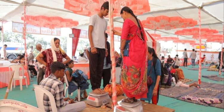 જિલ્લા પોલીસ અધિક્ષક નિતેશ પાંડેના માર્ગદર્શન હેઠળ દેવભૂમિ દ્વારકા જિલ્લા પોલીસ દ્વારા દ્વારકા જતા પદયાત્રીઓ માટે આરધના ધામ નજીક “પોલીસ સેવા કેમ્પ” શરૂ કરવામાં આવ્યો હતો. આ કેમ્પમાં પદયાત્રીઓને આરામ કરવાની વ્યવસ્થા ઉપરાંત પાણી, શરબત, ચા – નાસ્તો, ભોજન સહિતની વ્યવસ્થા કરવામાં આવી છે. ઉપરાંત પદયાત્રીઓના આરોગ્યની પણ સંભાળ રાખવામાં આવી રહી છે. તેમજ વાઈબ્રેટર મસાજ મશીન દ્વારા મસાજ પણ કરવામાં આવી રહી છે.