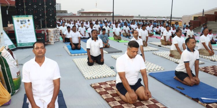દેવભૂમિ દ્વારકા, સંજીવ રાજપૂત: અગિયારમાં “આંતરરાષ્ટ્રીય યોગ દિવસ”ની ઉજવણી રૂપે અંદાજિત ૨૫૦થી વધુ લોકો દ્વારા જિલ્લાના આઇકોનિક સ્થળ સુદામા સેતુ, દ્વારકા ખાતે સામુહિક યોગ અભ્યાસ કરવામાં આવ્યો હતો.