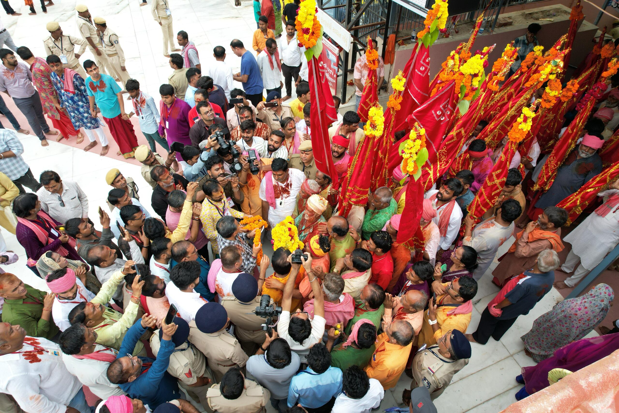 સંઘના આગેવાન કૌશિકભાઈ જોશીએ જણાવ્યું હતું કે લાલ દંડા સંઘે આજે માં અંબાના દર્શન કરી ધન્યતા અનુભવી છે. ધર્મને ઊંચો લાવવો અને માની ભક્તિ કરવી એ અમારા આ સંઘનું ઉદ્દેશ છે. ૫૧ બ્રાહ્મણો તેમજ ૪૫૦ જેટલા લોકોએ અમદાવાદથી શરૂ કરેલી પદયાત્રા આજે મા અંબાના દર્શન કરી પૂર્ણ થઈ છે. અમારા સંઘમાં ૫૦ થી ૮૫ વર્ષના ભક્તો પણ પદયાત્રા કરી રહ્યા છે જેમને માં એ શક્તિ આપી છે. અમારા સંઘમાં મોટાભાગના પદયાત્રીઓ ૫૦ વર્ષ કરતાં વધુ ઉંમરના હોવા છતાં આજે ભક્તો પગપાળા ચાલી અને માં અંબાના દર્શન કરી ધન્યતા અનુભવે છે.