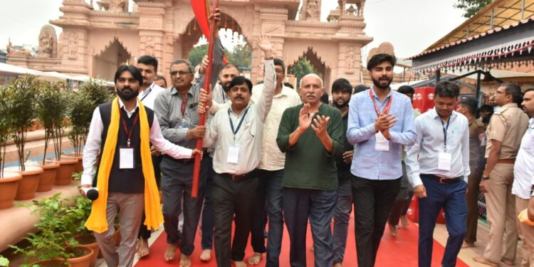 જિલ્લા માહિતી કચેરીના નાયબ માહિતી નિયામક કુલદીપ પરમારની અધ્યક્ષતામાં કચેરીના તમામ સ્ટાફ તથા પ્રિન્ટ અને ઇલેક્ટ્રોનિક્સ મીડિયાના પત્રકારો સાથે અંબાજી વી.આઈ.પી પ્લાઝા થી અંબાજી મંદિર સુધી પદયાત્રા યોજી માઁ અંબાને ધજા ચઢાવી માતાના આશીર્વાદ લીધા હતા.