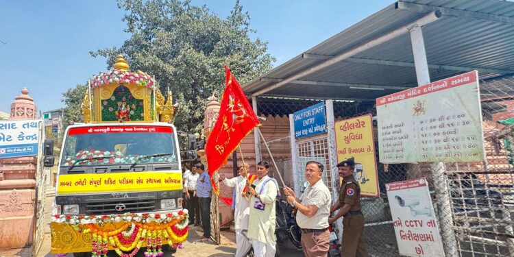 અંબાજી, સંજીવ રાજપૂત: શ્રી અંબાજી માતા દેવસ્થાન ટ્રસ્ટ અંબાજી ના વહીવટદાર અને અધિક કલેક્ટરશ્રી કૌશિક એસ મોદી દ્વારા ફ્લેગ ઓફ કરી શક્તિપીઠ અંબાજી ખાતેથી આજરોજ અંબિકા રથને દ્વિતીય રૂટ અંબાજીથી ચોટીલા માટે પ્રસ્થાન કરાવવામાં આવ્યું હતું.