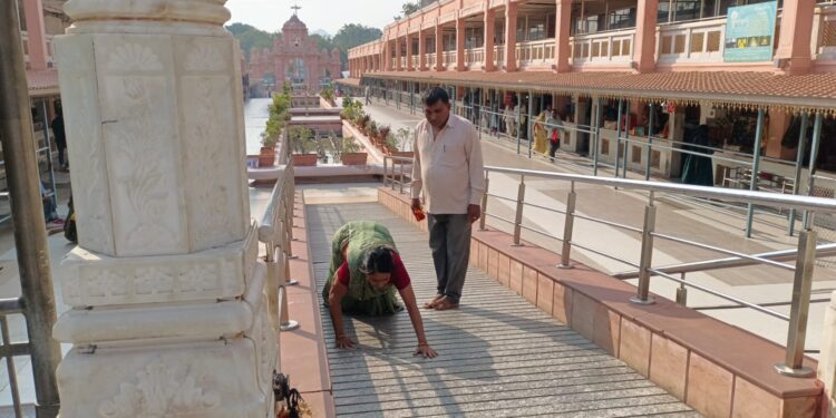 તેમને મળેલ ચેઇન રાખવા અંગે મન માં ખચકાટ અનુભવતા આ ચેઇન કોઈક યાત્રિક ની અથવા તો કોઈક વ્યક્તિ ના ગળા માંથી ચોરાઈ હોય તેવી શંકા થતા ચેઇન ને અંબાજી મંદિર માં માટે ના ચરણો મા અર્પણ કરવાનો નિણર્ય કર્યો હતો. જેથી આજ રોજ બપોરે ૦૩:૩૦ વાગ્યે શક્તિદ્વાર ખાતે થી મંદિર સુધી દંડવત પ્રણામ કરતા કરતા મંદિર સુધી પહોંચી માતાજી ને અર્પણ કરી હતી.