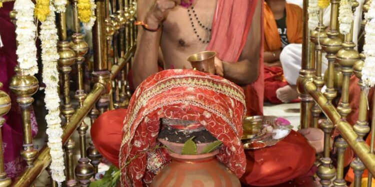 વહીવટદારશ્રી કૌશિક મોદીના હસ્તે ઘટ સ્થાપન વિધિ અને આરતી પૂજા કરાઈ