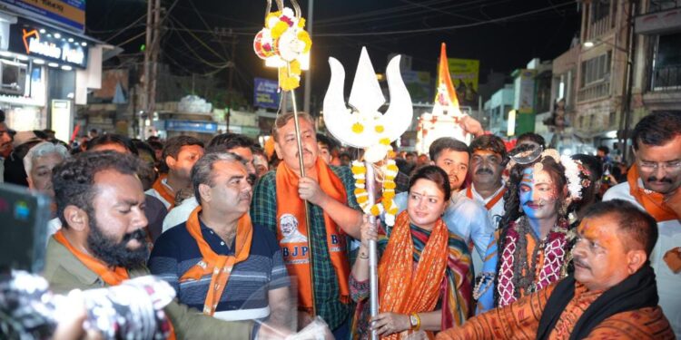 જામનગર, સંજીવ રાજપૂત: મહાશિવરાત્રી નિમિતે જામનગરમાં ભવ્યથી ભવ્ય શિવ શોભાયાત્રાનું આયોજન કરવામાં આવે છે, જામનગર શહેરમાં શિવ શોભાયાત્રાનું સ્વાગત કરવા પ્રજાજનો યાત્રાના માર્ગ ઉપર મળતી પડે છે, આ તબ્બકે ભારતીય જનતા પાર્ટી જામનગર શહેર દ્વારા બેડી ગેઇટ ખાતે સ્વાગત કરવામાં આવ્યું હતું.