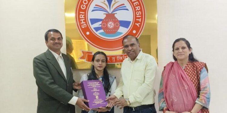 એબીએનએસ, વી.આર. ગોધરા (પંચમહાલ):: શ્રી ગોવિંદ ગુરુ યુનિવર્સિટી વિંઝોલમાં સમાજશાસ્ત્ર વિષયમાં ડૉ. કામિનીબેન દશોરાના માર્ગદર્શન હેઠળ “આદિવાસી વિસ્તારમાં સ્થાળાંતરની સ્થિતિ અને સમસ્યા (પંચમહાલ જિલ્લાના હાલોલ તાલુકાના સંદર્ભમાં)” પર મહાનિબંધ રજૂ કરીને અંકિતા પટેલે પીએચ.ડી.ની ડીગ્રી પ્રાપ્ત કરી છે.