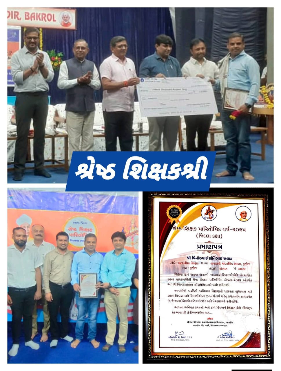 ગુજરાત સરકારના શિક્ષણ વિભાગ દ્વારા આણંદ જિલ્લાના વર્ષ ૨૦૨૫- ૨૬ માટે શ્રેષ્ઠ શિક્ષક એવૉર્ડ્સ પ્રાપ્ત કરનાર રાલેજના વતની અને લુણેજ હાઈસ્કૂલના શિક્ષક શ્રી વિનોદભાઈ કાંતિભાઈ સલાટ…