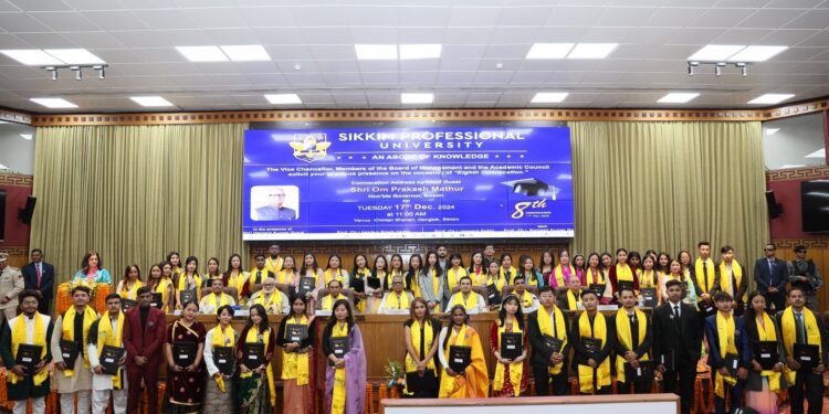 સિક્કિમ, સંજીવ રાજપૂત, એબીએનએસ: સિક્કિમ પ્રોફેશનલ યુનિવર્સિટીનો આઠમો દીક્ષાંત સમારોહ 17મી ડિસેમ્બરના રોજ ગંગટોકના ચિંતન ભવન ખાતે સિક્કિમના માનનીય રાજ્યપાલ ઓમ પ્રકાશ માથુરના મુખ્ય આતિથ્યમાં યોજાયો હતો.