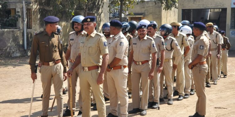 જે અનુસંધાને કાયદો અને વ્યવસ્થાની પરિસ્થિતિ જળવાઈ રહે અને મતદારો નિર્ભિક રીતે મતદાન કરી શકે અને ચૂંટણી પ્રક્રિયા શાંતિ પૂર્ણ રીતે પૂર્ણ કરી શકે તે હેતુથી જામનગર પોલીસ અધીક્ષક પ્રેમસુખ ડેલૂ તથા નાયબ કલેકટર ધ્રોલ સ્વપ્નિલ સિસલ , પ્રો. IPS અક્ષેશ એન્જિનિયર તથા ના.પો અધિક્ષક જામનગર ગ્રામ્યના રાજેન્દ્ર દેવધા તથા એલ.સી.બી પી.આઈ વી. એમ. લગારિયા તથા પંચ એ પો. સ્ટેના પી.આઇ એમ. એન. શેખ તથા ધ્રોલ પી.આઈ એચ.વી.રાઠોડ સહિત અનેક પોલીસ તથા હોમગાર્ડ તથા જી.આર.ડી સ્ટાફ સાથે પંચ એ પોલીસ સ્ટેશન સંવેદનશીલ વિસ્તાર અને ધ્રોલ શહેરના સંવેદનશીલ બૂથ અને બિલ્ડિંગ તથા સ્ટ્રોગ રૂમની મુલાકાત લેવામાં આવેલ અને તથા સંવેદનશીલ વિસ્તારમાં ફૂટ પેટ્રોલિંગ કરવામાં આવ્યું હતુ…