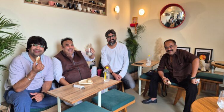 ગઈકાલે TAFF ના એડમીન તન્મય શેઠ અને કો-એડમીન દર્શિની શેઠ સહિત જાણીતા ગુજરાતી ફિલ્મ કલાકાર રાગી જાની અને પ્રતિષ્ઠિત દિગ્દર્શક/અભિનેતા અખિલ કોટક કૂફી કેફેની મુલાકાતે આવ્યા હતા. આ અવસરે TAFF અને AAAA તરફથી મલ્હાર ઠાકરને ખાસ ભેટરૂપે પર્સનલ કેર કિટ આપવામાં આવી હતી, જે સંપૂર્ણપણે કોફી આધારિત પ્રોડક્ટ્સ થી બનેલી હતી.