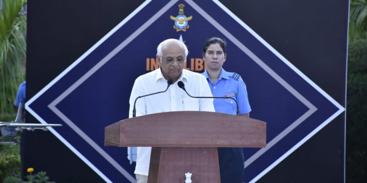 ગાંધીનગર, સંજીવ રાજપૂત; મુખ્યમંત્રી ભૂપેન્દ્ર પટેલની પ્રેરક ઉપસ્થિતિમાં ગાંધીનગર સ્થિત સાઉથ વેસ્ટર્ન એર કમાન્ડ ખાતે ભારતીય વાયુ સેનાના ૯૩મી વર્ષગાંઠની ગરિમામય ઉજવણી કરવામાં આવી હતી.