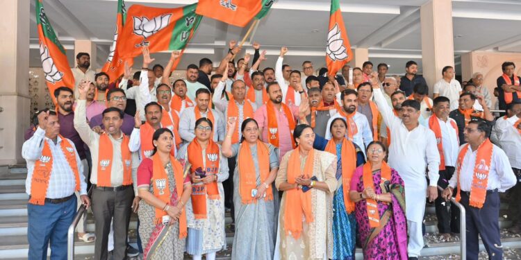 મહારાષ્ટ્રની મહાનગરપાલિકાઓની ચુંટણીમાં ભાજપા અને સાથી પક્ષોની મહાયુતિની પ્રચંડ જીતને કાર્યકર્તાઓએ પ્રદેશ ભાજપ કાર્યાલય ‘શ્રી કમલમ‘ ખાતે વધાવી
