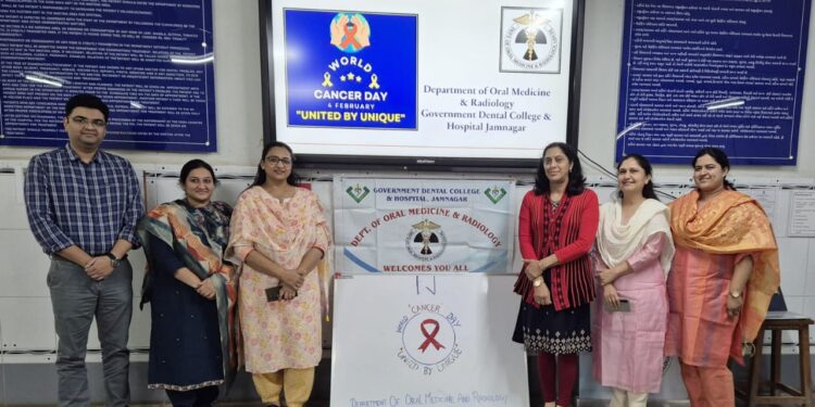 જામનગર, સંજીવ રાજપૂત: ગવર્મેન્ટ ડેન્ટલ કોલેજ અને હોસ્પિટલ જામનગર ખાતે ઓરલ મેડિસન અને રેડિયોલોજી વિભાગ દ્વારા “વિશ્વ કેન્સર દિવસ” ની ઉજવણી કરવામાં આવી હતી. જે અંતર્ગત ઓપીડીમાં આવેલ તમામ દર્દીઓની મોઢાની તપાસ કરીને કેન્સર અને કેન્સર પૂર્વેના તબક્કાનું નિદાન કરવામાં આવેલું હતું.
