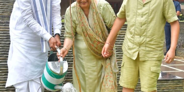 ગાંધીનગર, સંજીવ રાજપૂત; રાજ્યપાલ આચાર્ય દેવવ્રતજીએ લેડી ગવર્નર શ્રીમતી દર્શનાદેવીજી સાથે રાજભવનના પ્રાંગણમાં વૃક્ષારોપણ કર્યું હતું. પ્રધાનમંત્રી શ્રી નરેન્દ્રભાઈ મોદીના ‘એક પેડ મા કે નામ’ અભિયાનમાં સહભાગી થતાં રાજ્યપાલ આચાર્ય દેવવ્રતજીના પૌત્ર આર્યમાને પણ દાદીમાં અને દાદાજી સાથે વૃક્ષારોપણ કર્યું હતું.