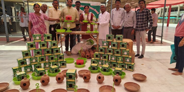 ત્યારે આજે 14 મે ના રોજ અંબાજી ખાતે શ્રી આરાસુરી અંબાજી માતા દેવસ્થાન ટ્રસ્ટ દ્વારા ચાચર ચોક ખાતે એસ્ટેટ ઓફિસર પાયલબેન પટેલ તેમજ ટેમ્પલ ઇન્સ્પેક્ટર મિતેશભાઈ ડી પંડ્યાના અધ્યક્ષ સ્થાને યોજાયેલા કાર્યક્રમમાં SPCA સંસ્થાના ઉપપ્રમુખ જયંતીલાલ દોશી, ચીનુંભાઈ શાહ, હરેશભાઇ ભાટીયા, ડિરેકટર ભુરપુરી ગોસ્વામી, હાજાજી રાજપૂત, વિપુલભાઈ ઠાકોર તેમજ દર્શનાર્થીઓ સહિત દેવસ્થાન ટ્રસ્ટના કર્મચારીઓ ઉપસ્થિત રહ્યા હતા, ત્યારે અંબાજી મંદિર ચાચર ચોક ખાતે જીવદયા માટેનો પક્ષીઓ માટે સારો એવો કાર્યક્રમ યોજાયો હતો, જેમાં સૌ કોઈએ સંસ્થાનો આભાર વ્યક્ત કર્યા હતો ત્યારે