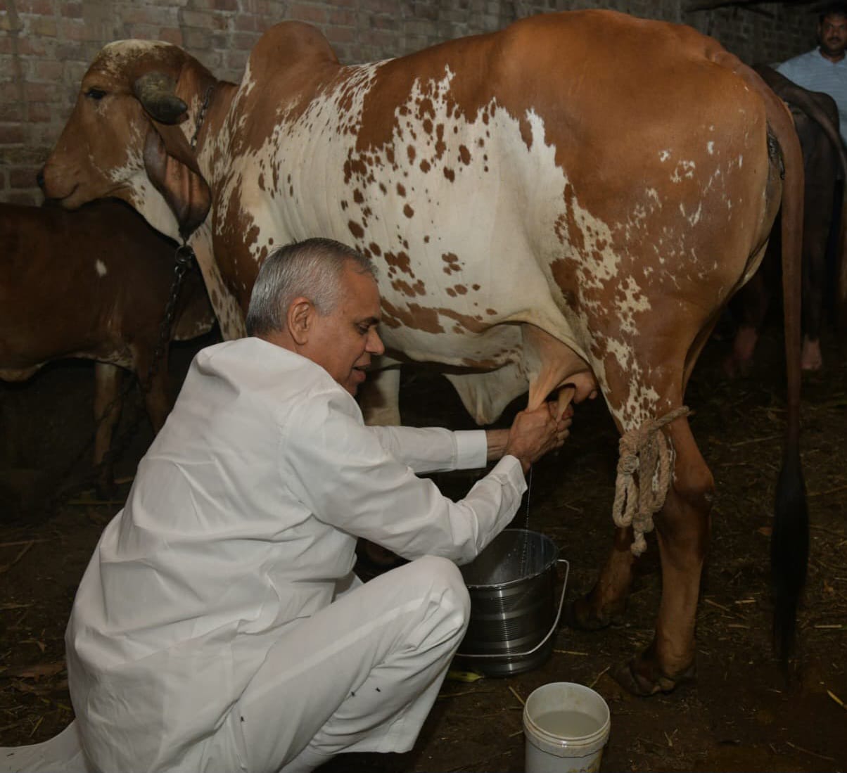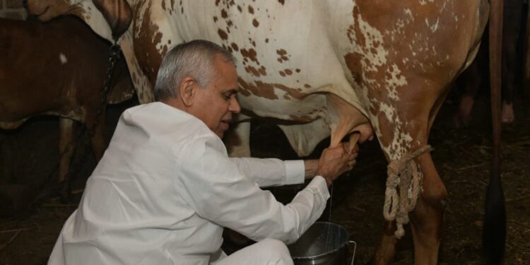 પ્રાકૃતિક કૃષિ કરતાં ખેડૂતના ઘરે સ્વયં ગાય દોહતા રાજ્યપાલ આચાર્ય દેવવ્રત