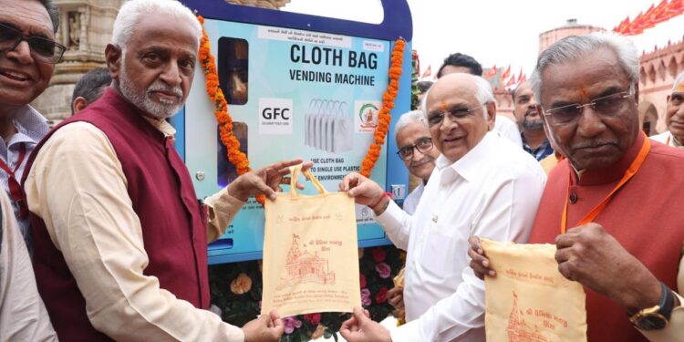 આ અવસરે મુખ્યમંત્રીએ રાજ્યના વિવિધ 14 જેટલા ધર્મસ્થાનોમાં ક્લોથ બેગ વેન્ડીંગ મશીનો પ્લાસ્ટિક મુક્ત અભિયાનને વેગ આપી રહ્યા છે તેમ જણાવી આજે લોકાર્પણ કરાયેલા આ મશીનનો ઉપયોગ કરવા અપીલ કરી હતી.