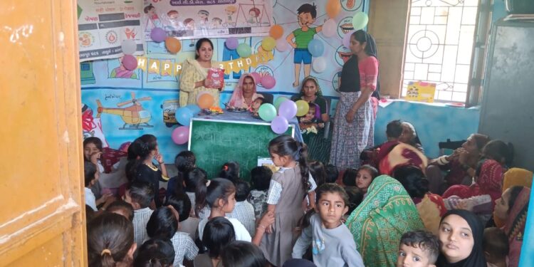 તેમજ બાલ દિવસની ઉજવણી કરવામાં આવી હતી. પ્રવૃત્તિમાં ફળનું અભિનય ગીત ફળની કીટ દ્વારા ફળ પરિચયની પ્રવૃત્તિ તેમજ બાળકના પંજા દ્વારા છાપકામની પ્રવૃત્તિ કરાવવામાં આવી હતી જેમાં મોટી સંખ્યામાં ત્રણથી છ વર્ષના વાલી ઉપસ્થિત રહ્યા હતા.