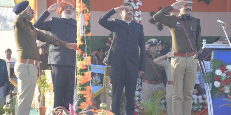 જામનગર, સંજીવ રાજપૂત: જામનગર જિલ્લા કક્ષાના ૭૬માં પ્રજાસત્તાક પર્વની ઉજવણી જિલ્લાના પ્રભારીમંત્રીશ્રી અને રાજ્યના પ્રવાસન, સાંસ્કૃતિક પ્રવૃત્તિઓ, વન અને પર્યાવરણ તથા ક્લાઈમેટ ચેન્જ વિભાગના મંત્રી મુળુભાઈ બેરાની અધ્યક્ષતામાં કરવામાં આવી હતી.