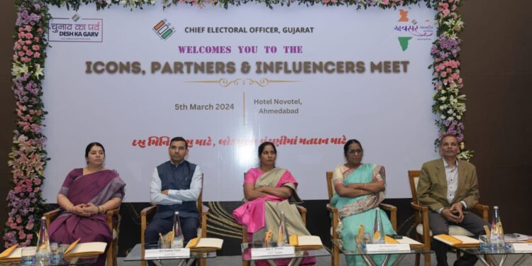 અમદાવાદ સંજીવ રાજપૂત: રાજ્યના મુખ્ય ચૂંટણી અધિકારી પી. ભારતીની અધ્યક્ષતામાં આઇકોન્સ, એમઓયુ પાર્ટનર્સ અને ઇન્ફ્લુએન્સર્સ મીટ યોજવામાં આવી હતી. જેમાં રાજ્યના વિવિધ જિલ્લાઓમાંથી આવેલા સોશિયલ મીડિયા ઇન્ફ્લુએનસર્સ, વિવિધ સહયોગી વિભાગના અધિકારીઓ અને જિલ્લામાં નિયુક્ત કરેલા આઇકોન્સ ઉપસ્થિત રહ્યા હતા.