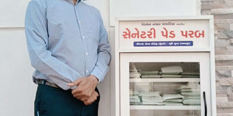 બનાસકાંઠા: સંજીવ રાજપૂત: ગુજરાતના પેડમેન તરીકે ઓળખાતા પાલનપુરના જાણીતા કલા શિક્ષક નયન ચત્રારિયા છેલ્લાં ત્રણ વર્ષથી ૧૦થી ૧૪ વર્ષની ઉંમરની જરૂરિયાતમંદ દીકરીઓને નિઃશુલ્ક સેનેટરી પેડ આપે છે. એટલું જ નહીં, તેના વિશે ગામેગામ ફરીને વૈજ્ઞાનિક સમજ પણ આપે છે.