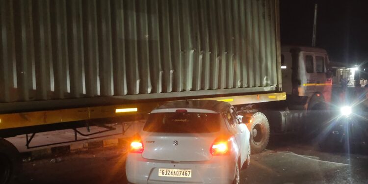 રાધનપુર. અનિલ રામાનુજ, એબીએનએસ : પાટણ જીલ્લાના હારીજ-રાધનપુર હાઈવે પર CNG પેટ્રોલ પંપ નજીક ગઈકાલે રાત્રે એક ગંભીર અકસ્માત સર્જાયો હતો. રાધનપુર તરફથી આવી રહેલી એક કારે આગળ જતી બીજી કારને પાછળથી ટક્કર મારી હતી. ટક્કરના કારણે આગળની કાર રસ્તાની સાઈડમાં પાર્ક કરેલા કન્ટેનર સાથે અથડાઈ હતી.