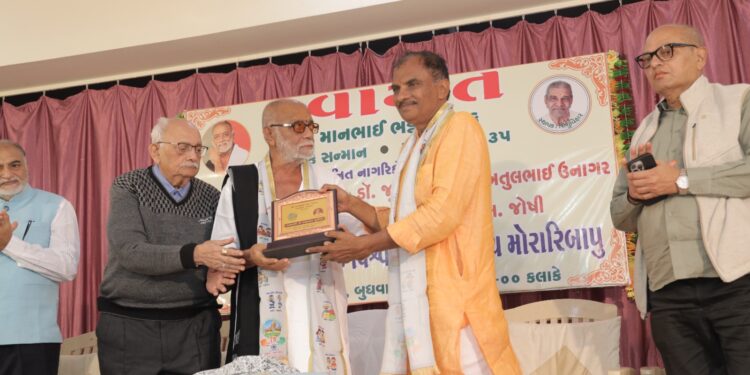 દેવત્વ પ્રાપ્ત કરવું અઘરું છે: મોરારિબાપુ શ્રી મનસુખ સુવાગિયા સહિત 5 મહાનુભાવોનો ભાવનગરમા નાગરિક સન્માન સમારોહ
