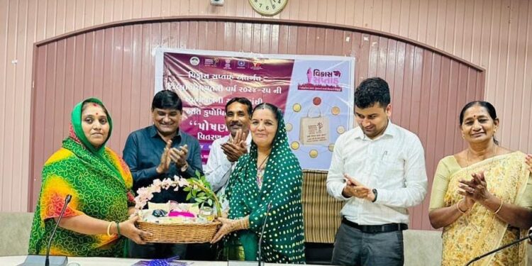 જેમાં બાળક દીઠ સિંગદાણા (400 ગ્રામ), રાગી લોટ (500 ગ્રામ), દલીયા (500 ગ્રામ), મગ (500 ગ્રામ), ગોળ (950 ગ્રામ), મોરીન્ગા(સરગવા) પાઉડર (100 ગ્રામ)નું વિતરણ કરવામાં આવ્યું હતું. તેમજ વાનગીઓની રેસીપીનો પણ સમાવેશ કરવામાં આવ્યો હતો.