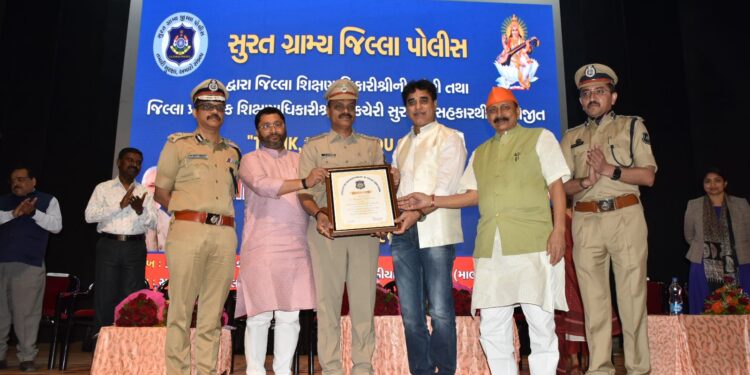 સંજીવ રાજપૂત, સુરત: સુરત જિલ્લાને સાયબર સેફ બનાવવા અને પ્રજાજનોને ઓનલાઈન છેતરપિંડીથી બચાવવા માટે સુરત ગ્રામ્ય પોલીસ વિભાગ દ્વારા જિલ્લા શિક્ષાણાધિકારીની કચેરી અને જિલ્લા પ્રાથમિક શિક્ષાણાધિકારીની કચેરીના સહયોગથી મહુવા સ્થિત ઉકા તરસાડીયા યુનિવર્સિટીના માલિબા કેમ્પસમાં શિક્ષણ રાજ્યમંત્રી પ્રફુલભાઈ પાનશેરિયાના અધ્યક્ષસ્થાને “THINK,BEFORE YOU CLICK ” સાયબર જાગૃતિ અભિયાન કાર્યક્રમ યોજાયો હતો.