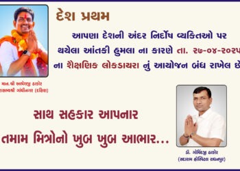 કામરેજના સરથાણા જકાતનાકા ખાતે રામકથામાં આ શ્રદ્ધાંજલિ કાર્યક્રમ યોજાયો. જમ્મુ-કાશ્મીરના…