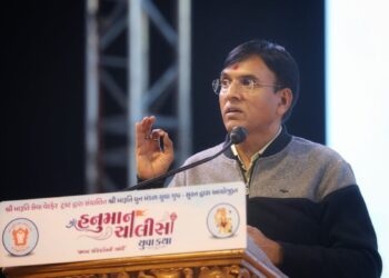સુરત ખાતે 'શ્રી હનુમાન ચાલીસા યુવા કથા'માં સહભાગી થતા રાજ્યપાલશ્રી આચાર્ય…
