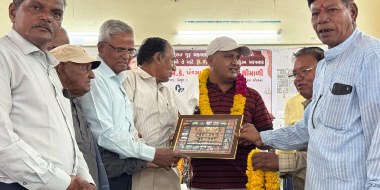 નિવૃત ડી.આઈ.જી. એ.કે.પંડ્યા અને નિવૃત ઈન્કમટેક્ષ કમિશ્નર બી.કે.શ્રીમાળીનું સાકર તુલા કરી લોક અભિવાદન કરાયુ