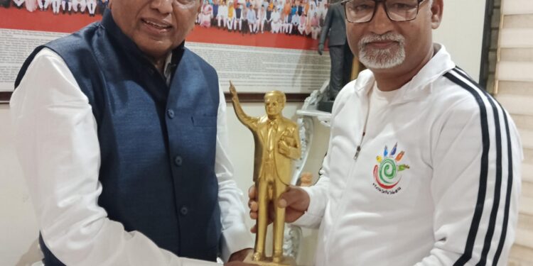 અમદાવાદ, સંજીવ રાજપૂત: મોટી સરાય ,પાટણ ખાતે આવેલા ડો બાબા સાહેબ આંબેડકર ચોકમાં મોટી સરાયના વતની જાણીતા સામાજીક યુવા કાર્યકર રણજીતસિંહ મફતલાલ પરમાર ઉર્ફે ચેતન સાલવી એ ડો બાબા સાહેબ આંબેડકરની અર્ધ પ્રતિમાનું એકલા હાથે સ્થાપન કરતા પૂર્વ સાંસદ ડોક્ટર કિરીટભાઈ પ્રેમજીભાઈ સોલંકી એ તેમના રાણીપ અમદાવાદ સ્થિત નિવાસસ્થાને ચેતન સાલવીનુ ડો બાબા સાહેબ આંબેડકરની પ્રતિમા અર્પણ કરીને સન્માન કર્યું હતું.