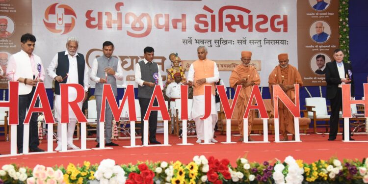 અમરેલી જિલ્લાના ગ્રામ્ય વિસ્તારમાં રોગાતુર દર્દીઓની સેવા સાથે આરોગ્યલક્ષી સારવાર અને સ્વાસ્થ્યનો વિશ્વસનીય સહારો બની શકે તે માટે અદ્યતન સુવિધાઓ સાથે સ્વામિનારાયણ ગુરૂકુળ રાજકોટ સંસ્થાન દ્વારા માન. રાજ્યપાલ શ્રી આચાર્ય દેવવ્રતજીના હસ્તે માન. કેન્દ્રીય કેબિનેટ મંત્રી શ્રી મનસુખભાઈ માંડવિયા, માન. કેન્દ્રીય કેબિનેટ પૂર્વ મંત્રી અને રાજકોટ લોકસભાના સાંસદ શ્રી પરસોત્તમભાઈ રૂપાલા, માન. રાજ્ય શિક્ષણ મંત્રી અને કામરેજ વિધાનસભાના ધારાસભ્ય શ્રી પ્રફુલભાઈ પાનશેરીયા, ગુજરાત વિધાનસભાના નાયબ મુખ્ય દંડક અને અમરેલી વિધાનસભાના ધારાસભ્ય શ્રી કૌશિકભાઈ વૈકરિયા સહિતના મહાનુભાવોની ઉપસ્થિતિમાં 100 બેડની મલ્ટીસ્પેશિયાલિટી ધર્મજીવન હોસ્પિટલનુ લોકાર્પણ કરવામાં આવ્યું. જે આરોગ્ય, સેવા અને સમર્પણનું શ્રેષ્ઠ ઉદાહરણ છે.