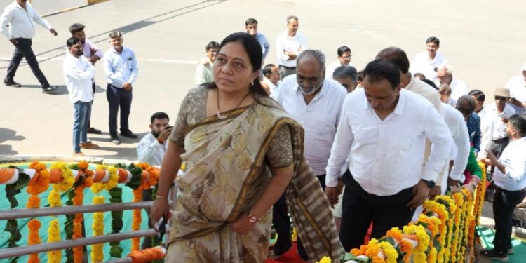 ગાંધીનગર, સંજીવ રાજપૂત: ગાંધીનગર મહાનગરપાલિકા દ્વારા ગુજરાતના ૬૫મા સ્થાપના દિવસ નિમિત્તે શહેરના ઘ-૫ સર્કલ ખાતે આવેલ રવિશંકર મહારાજની પ્રતિમાને પુષ્પાંજલિ અર્પણ કરી ગુજરાત સ્થાપના દિવસની ઉજવણી કરવામાં આવી હતી.